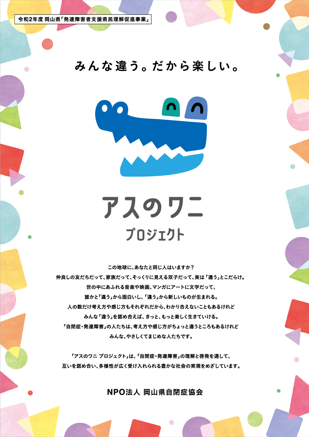 今、岡山県自閉症協会では、岡山県からの委託を受けて「アスのワニ プロジェクト」と称した一般参加型の啓発活動を展開中です。